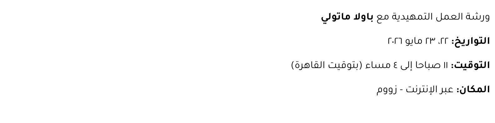 Please note that it is required to attend the assistants meeting with the teacher on the 13th of Feb 2025 at 5pm (Cairo Time) as well attending both online sessions of the Introduction in full on the 22nd & 23rd May 2026 from 11am to 4pm (Cairo time).